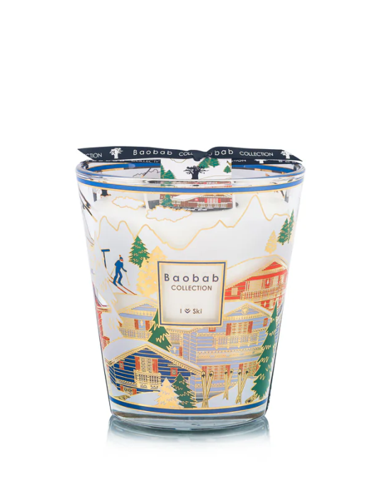 Plongez au cœur des sommets enneigés avec la nouvelle édition de la bougie I Love Ski, une ode élégante à l’univers alpin. Son verre raffiné est sublimé par une sérigraphie d’or et de couleurs vives, illustrant de charmants chalets de montagne, nichés au creux d’un paysage hivernal. On s’amuse à regarder les petits skieurs sur le verre, les sapins dorés, et le télésiège qui semble s’animer sous la lumière de la flamme.