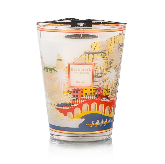 Célébrant la Principauté de Monaco, cette bougie parfumée présente une sérigraphie d'or 24 carats appliquée à la main où l'architecture Belle Époque rencontre l'audace contemporaine. Les silhouettes historiques scintillent au coucher du soleil, tandis que la route sinueuse évoque le légendaire Grand Prix en rouge et blanc.