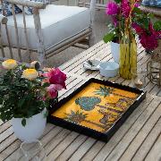Plateau rectangulaire jaune en laque noir fabriqué à la main.