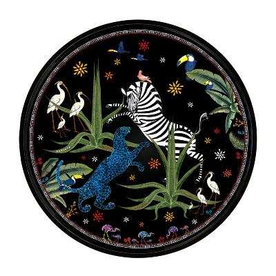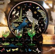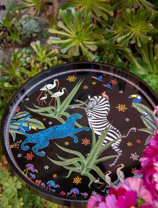 * Les flacons en verre et le pot des bougies parfumés sont estampés d’images évoquant léopards et palmiers.