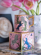 * Les flacons en verre et le pot des bougies parfumés sont estampés d’images évoquant léopards et palmiers.