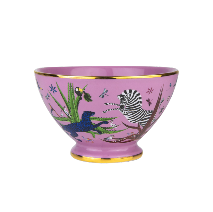Bol en céramique décoré à la main avec une sérigraphie dorée.