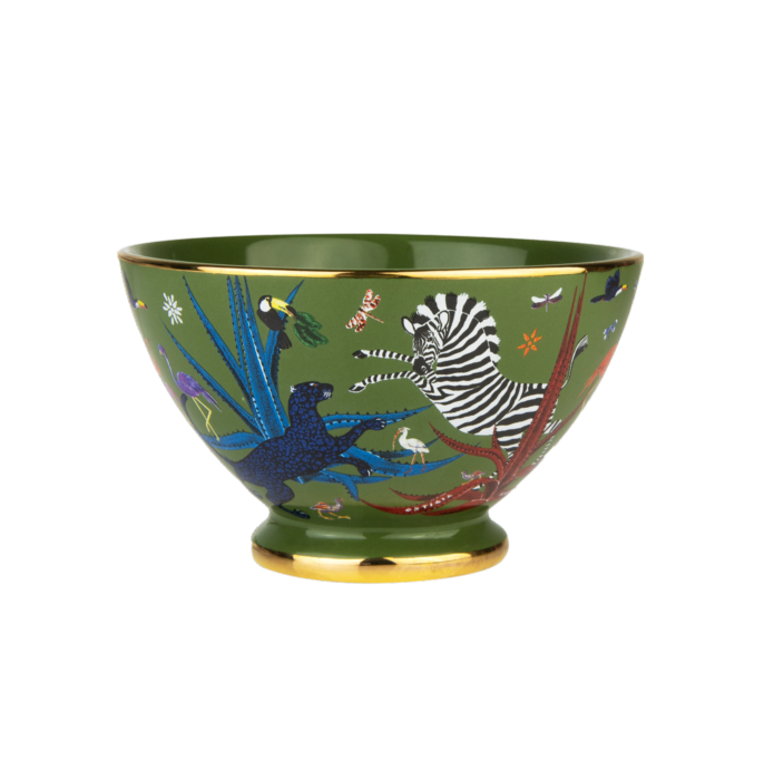 Bol en céramique décoré à la main avec une sérigraphie dorée.