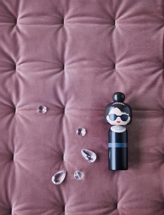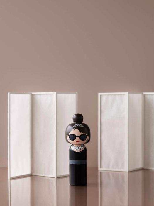 Avec précision et créativité, la créatrice Becky Kemp a su capturer l'expression personnelle et le style d'Audrey, tout en ajoutant une touche d'humour à la figurine kokeshi.
