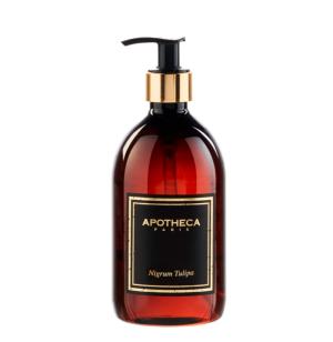 Une lourde bouteille en verre, de savon pur glycériné enrichi d'huile d'olive et du délicat parfum aux fleurs printanières