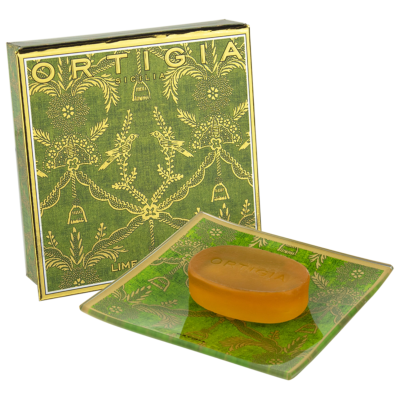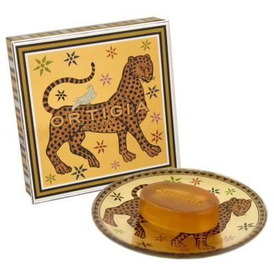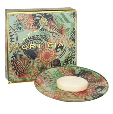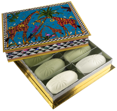 Un assortiment de 3 savons de 40 gr à l'huile d'olive dans une boîte en feuille d'or