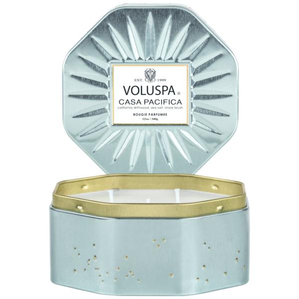 Cette belle bougie en étain octogonale à 3 mèches ajoute de l'élégance à n'importe quelle pièce.