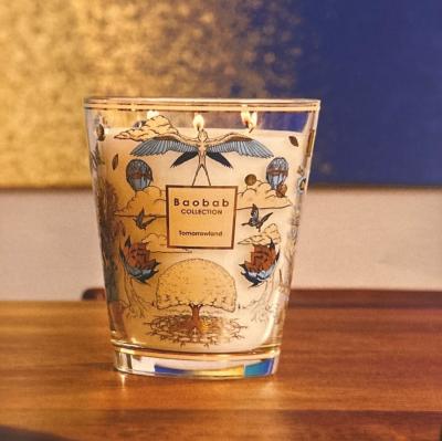 Cette grande bougie sans parfum, décorée de son motif tel un tatouage rappelle les cierges qui éclairaient autrefois les scènes des théâtres...