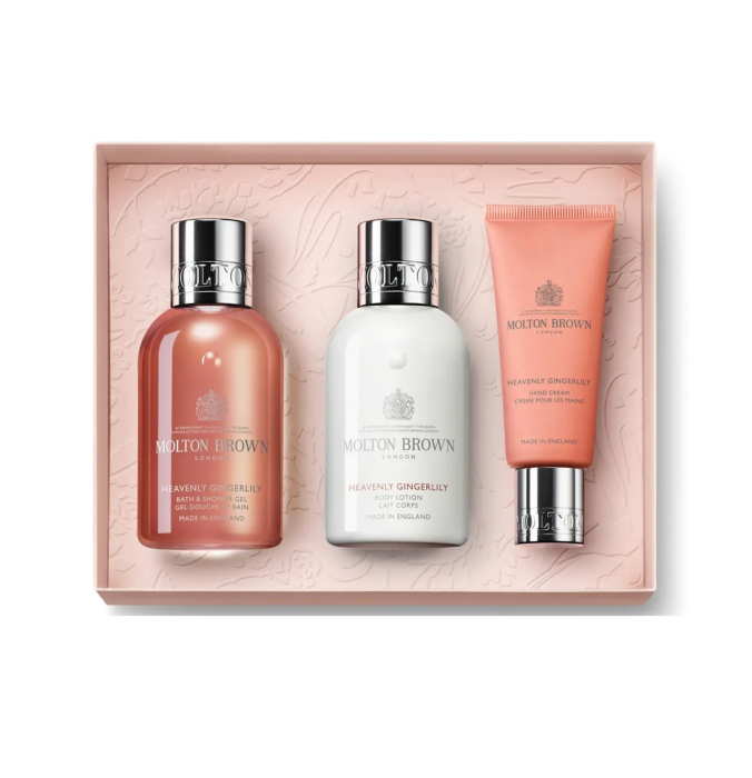 Notre rituel de toilette au parfum floral emblématique, avec un gel douche pour le corps, une lotion et une crème pour les mains en format voyage ; nos soins vous envelopperont d’une brise douce et idyllique aux notes vivifiantes de gingembre, avec une touche élégante de lys et la douceur du musc.