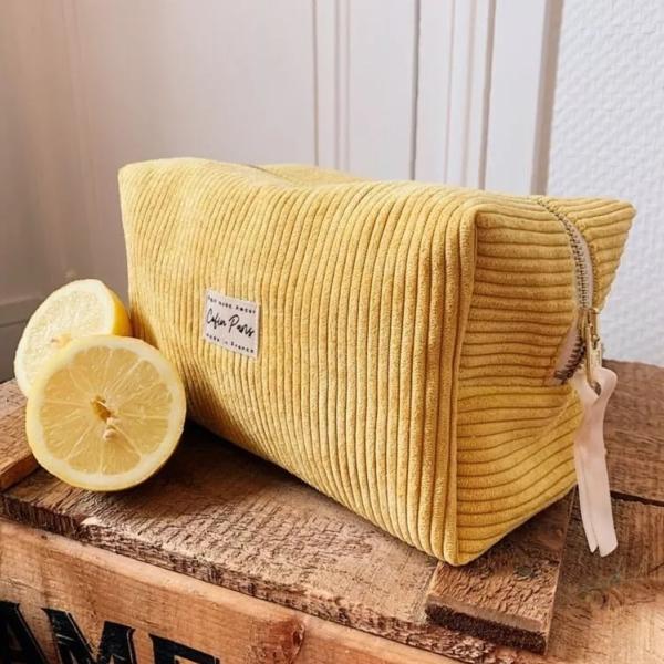 Grande trousse de toilette en velours côtelé idéale pour contenir tout votre nécessaire de toilette...